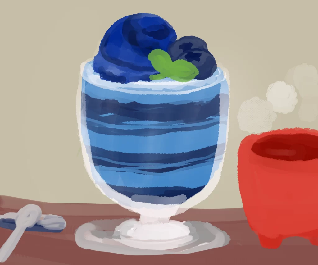 パフェは青と黒に見えました。