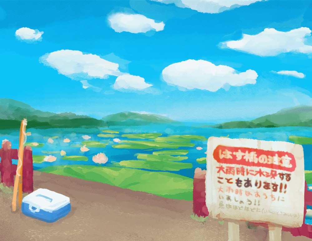 生きたイカを餌に、ハス畑の中で釣り…?